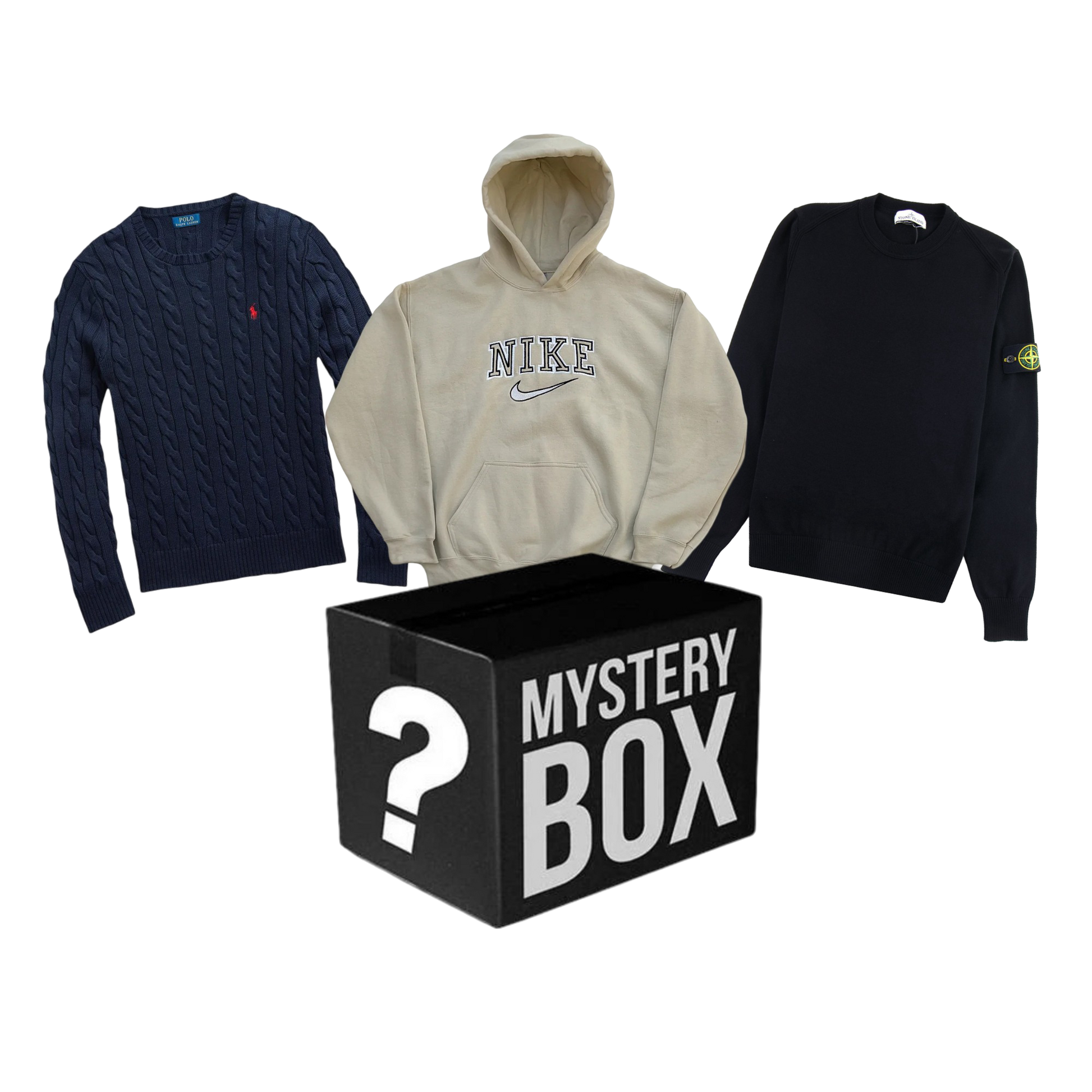 Jump into a style adventure with our Mystery Box! Perfect for anyone who loves a fun mystery for cheap, each box is filled with a random assortment of clothing. You might get anything from coats to T-shirts, featuring big brands or unique finds.